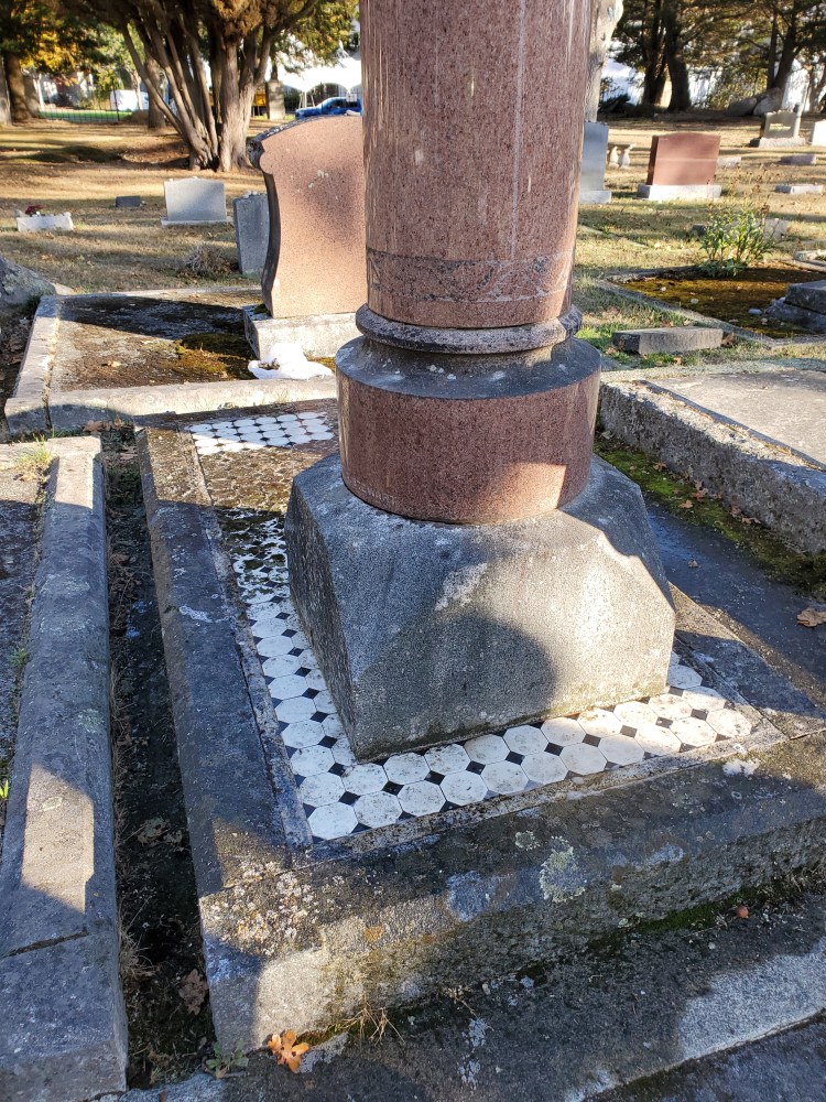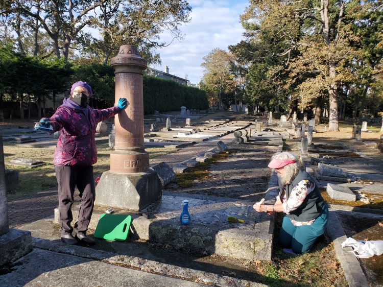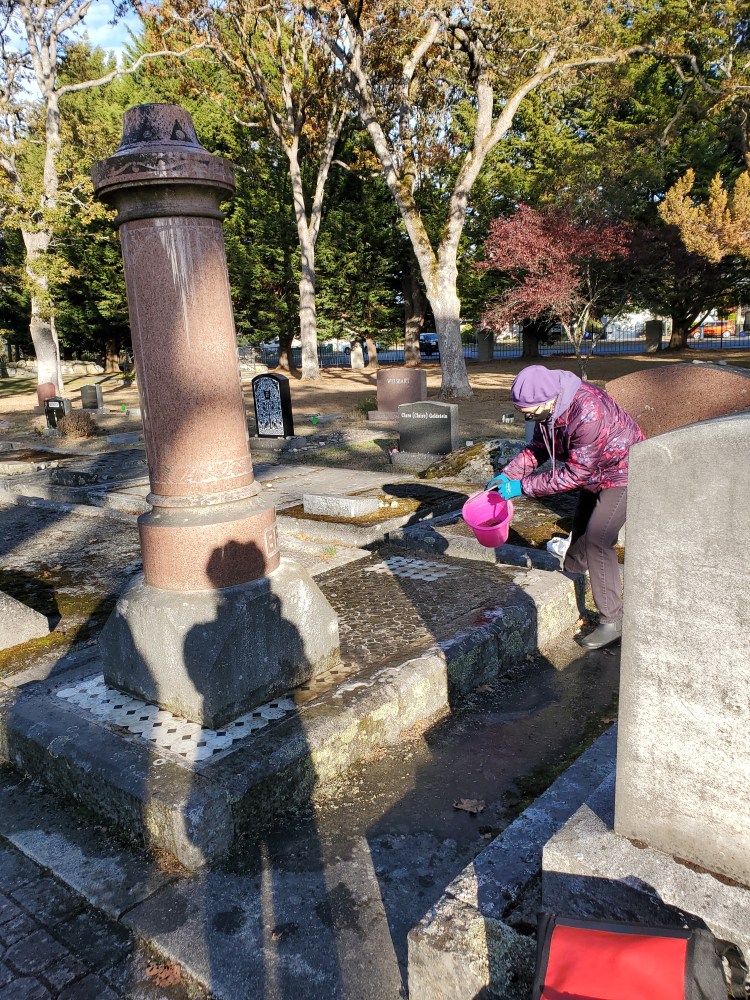 Shoshana Litman and Laura Rosenberg joined Amber Woods in cleaning the grave of Isador Braverman. Laura and Shoshana worked on the headstone before moving onto the tiled surface. Amber focused on the tiles.