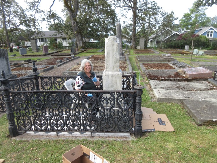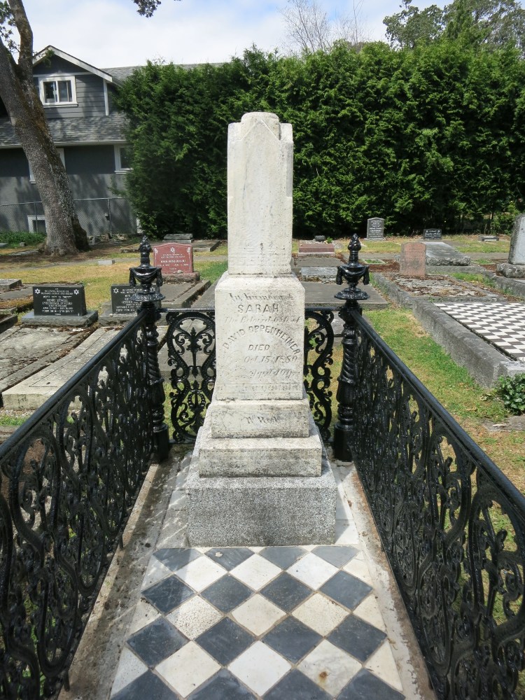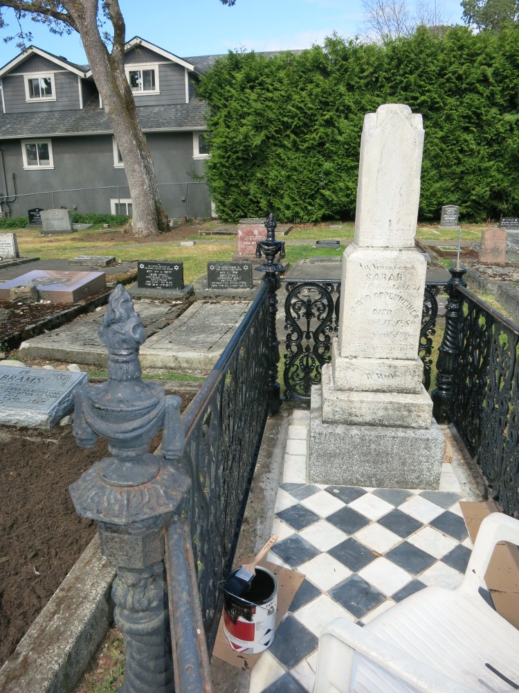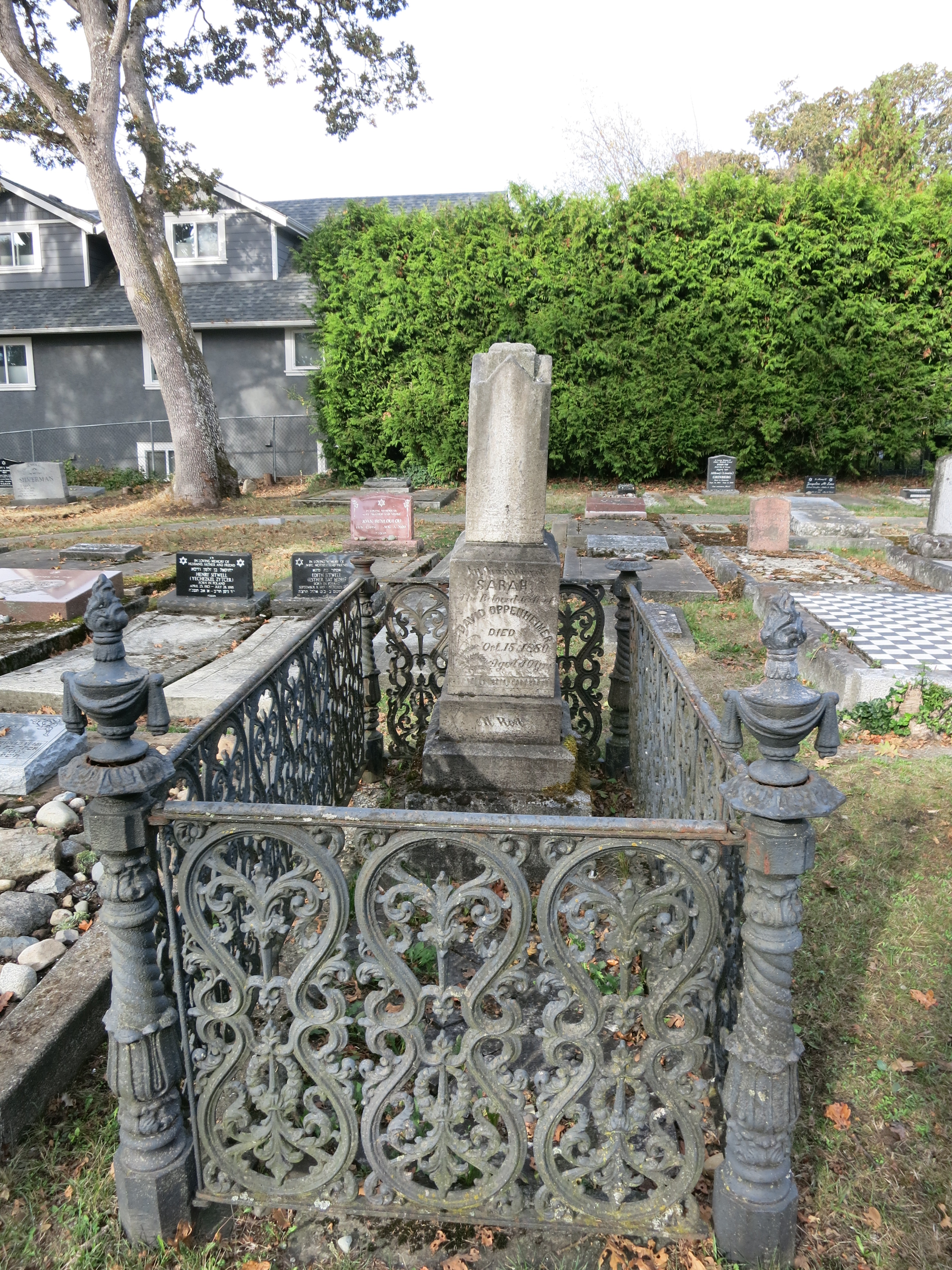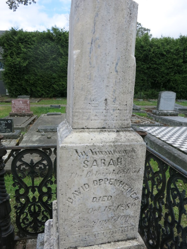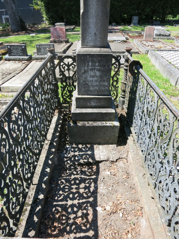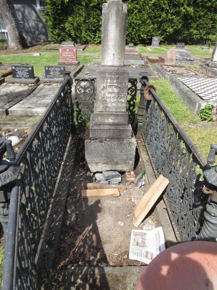 Over time Sarah Oppenheimer’s grave became very weathered. The fence became rusted, two of the finials were lost, the monument was leaning and the tiles discolored and were either broken or had sunken. In the summer of 2024, Wilf Bruch of the Old Cemeteries Society undertook the restoration of this grave.
