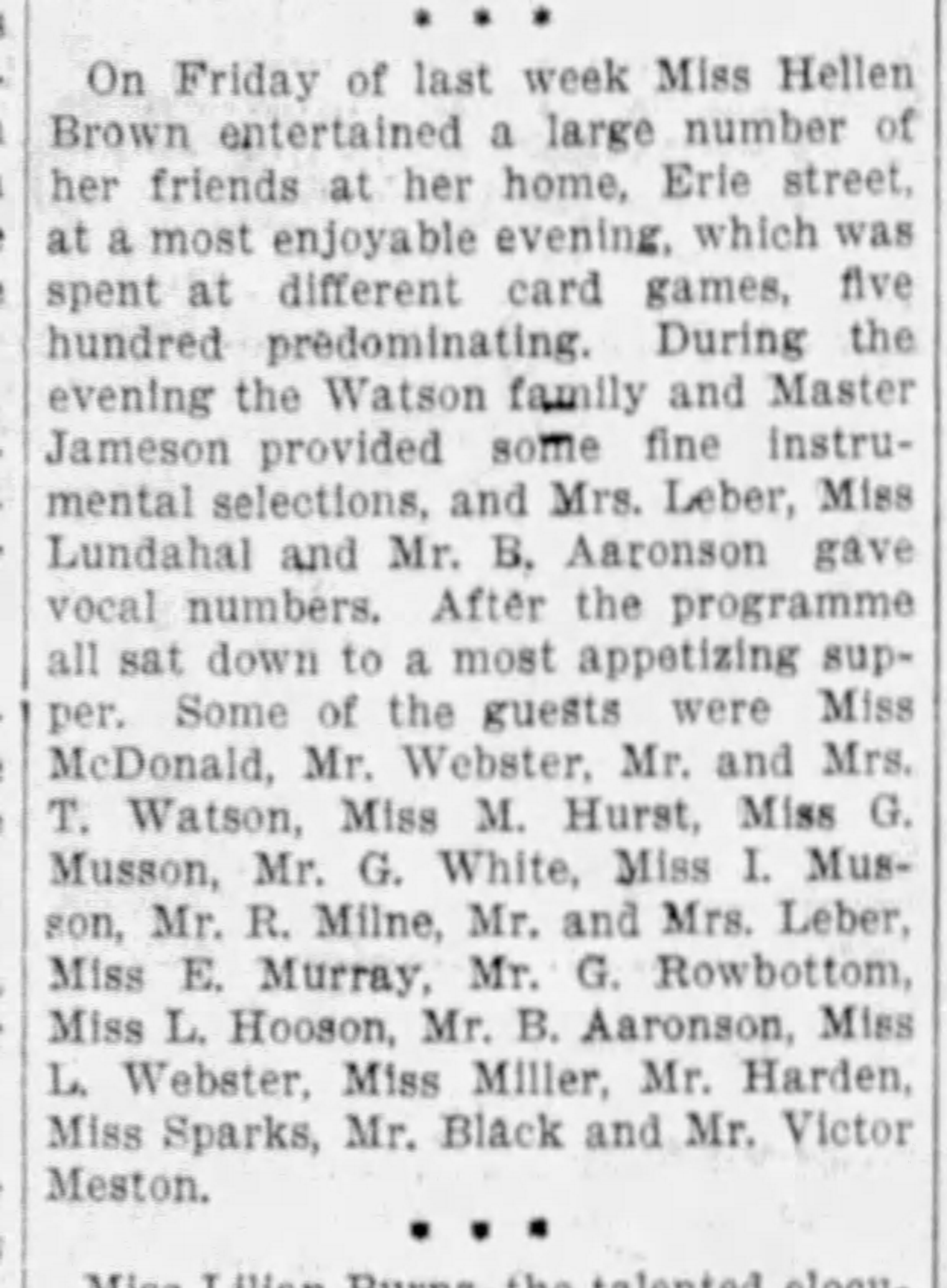 Singing was a part of Barney’s life as well. The Victoria Daily Times reported on November 17, 1906 that he sang in a production of “Strongheart” staged at the Victoria Theatre. On March 16, 1907, The Victoria Daily Times described a party that Miss Helen Brown held for a large number of friends at her home. Barney sang as part of the entertainment.
