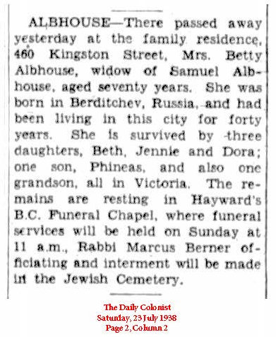Jennie Albhouse, born 13 September 1896 in Victoria, died 5 June 1988 in Ganges