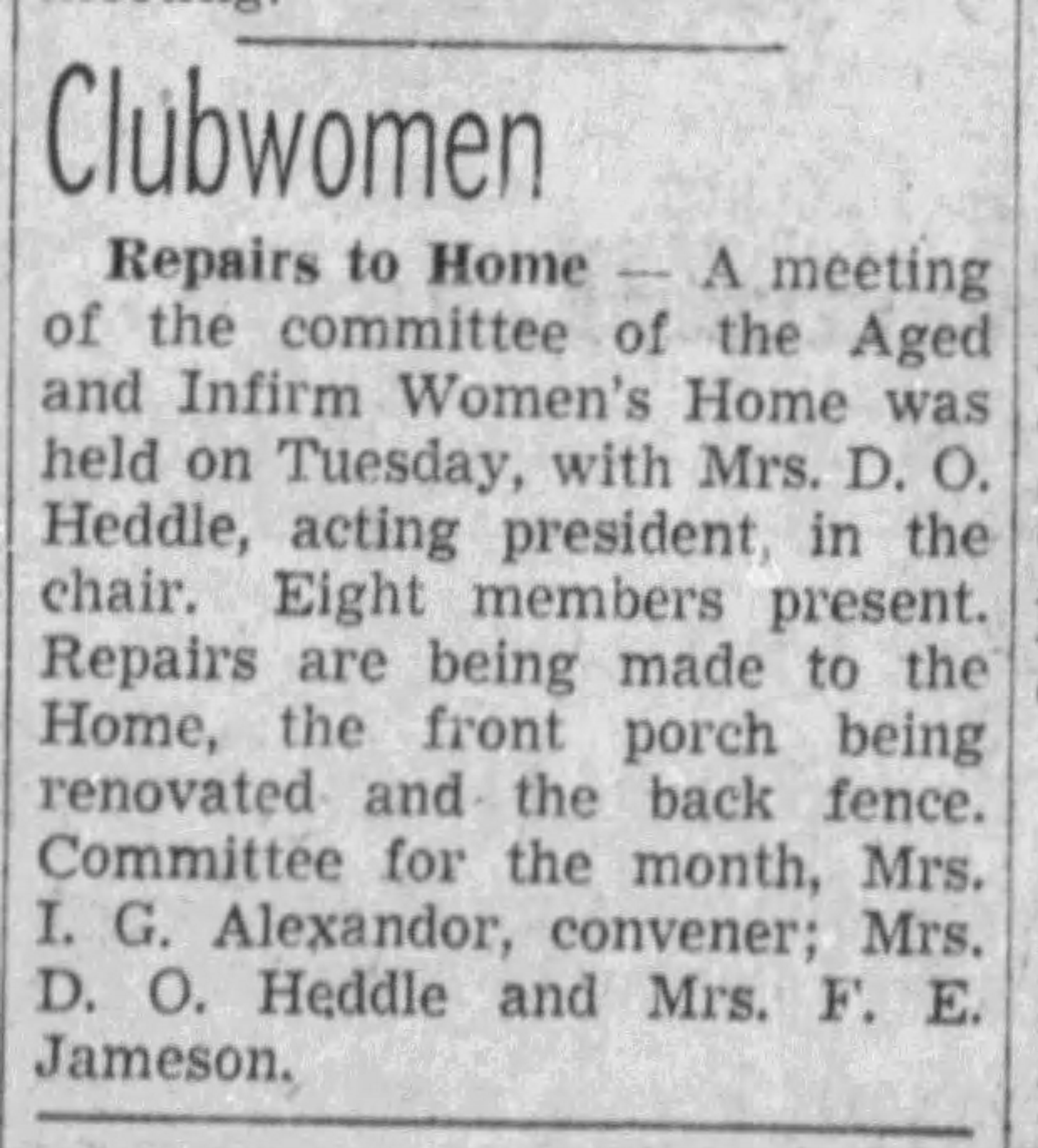 The Daily Colonist reported on November 29, 1941 that Mrs. A. Bean hosted a gathering of the Ladies Auxiliary of B’nai B’rith at her home, 15 Linden Avenue, to honor Miss Charmaine Cohen’s upcoming marriage. According to the Victoria Daily Times on March 7, 1946, Annabelle was the convener for a meeting of Victoria’s Infirm Women’s Home to discuss repairs and renovations to the front and back porch.