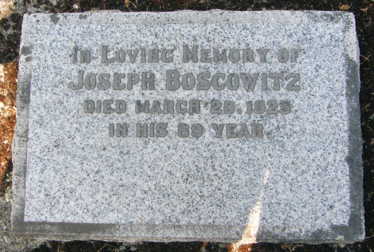 Joseph Boscowitz was born in Bavaria. In his youth he immigrated to the United States and settled in San Francisco. He moved to Victoria in 1862 where on December 21, 1864 he married Leah Phillips. He became a Naturalization Canadian in November, 1895.