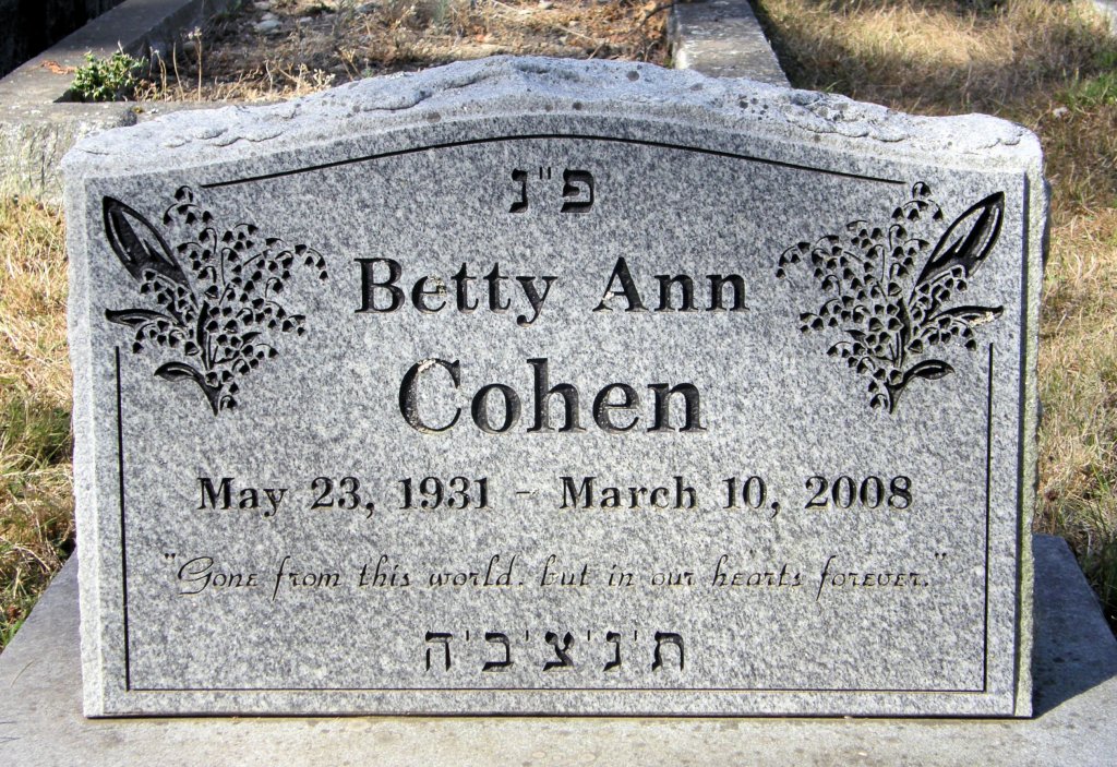 Betty Ann married Murray Fegelman (1930-2002) on November 9, 1950 in Los Angeles, California. Murray is buried in Maple, Ontario. On April 30, 1955 their son Steven Brian Fegelman was born in Toronto, Ontario. He died in 1994 and is buried in Parry Sound, Ontario.