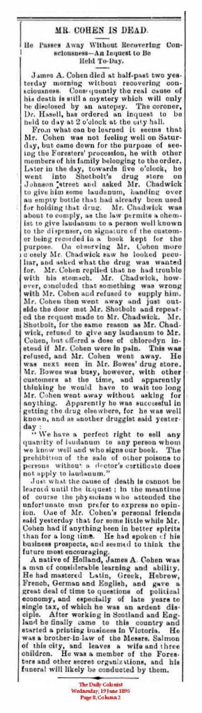 Death: June 18, 1895 in Victoria, B.C.