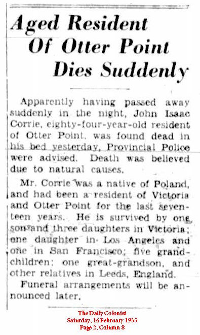 Death: February 15, 1935 in Otter Point, Sooke, B.C.
