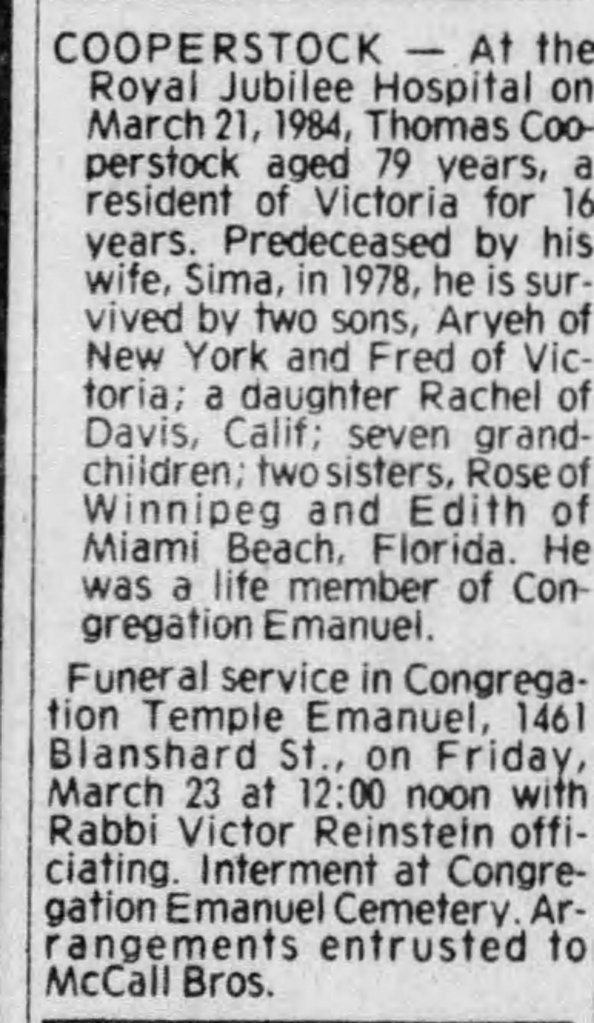 Death: March 21, 1984 in Victoria, B.C.