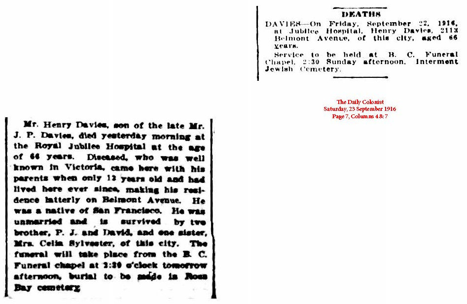Death: September 22, 1916 in Victoria, B.C.