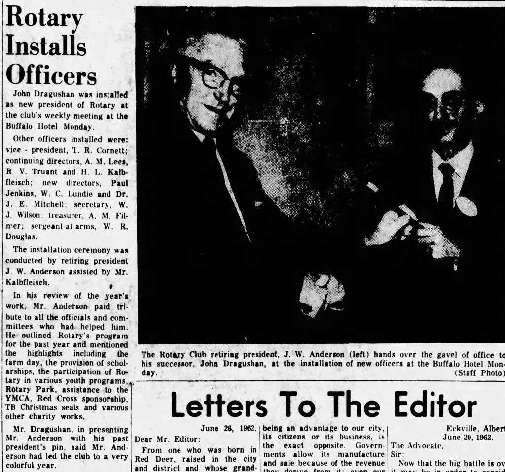 John was well known and respected in Red Deer, and was sought after by his colleagues for leadership roles in the community. He was recognized as an accomplished public speaker, and was acknowledged for his quick wit and sense of humour.