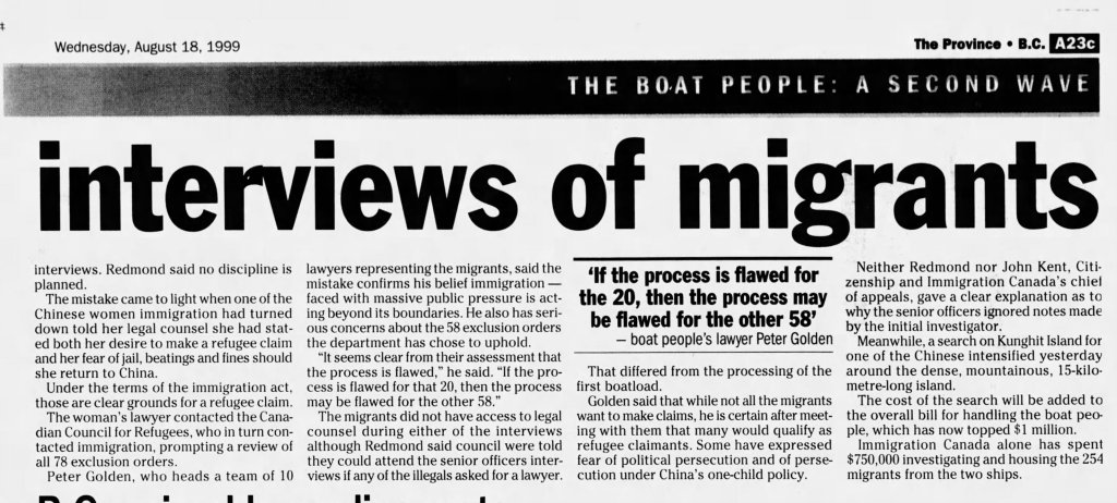When the first boat arrived, Jim Redmond, director of Citizenship and Immigration, asked Golden to put together a team of immigration lawyers and interpreters.