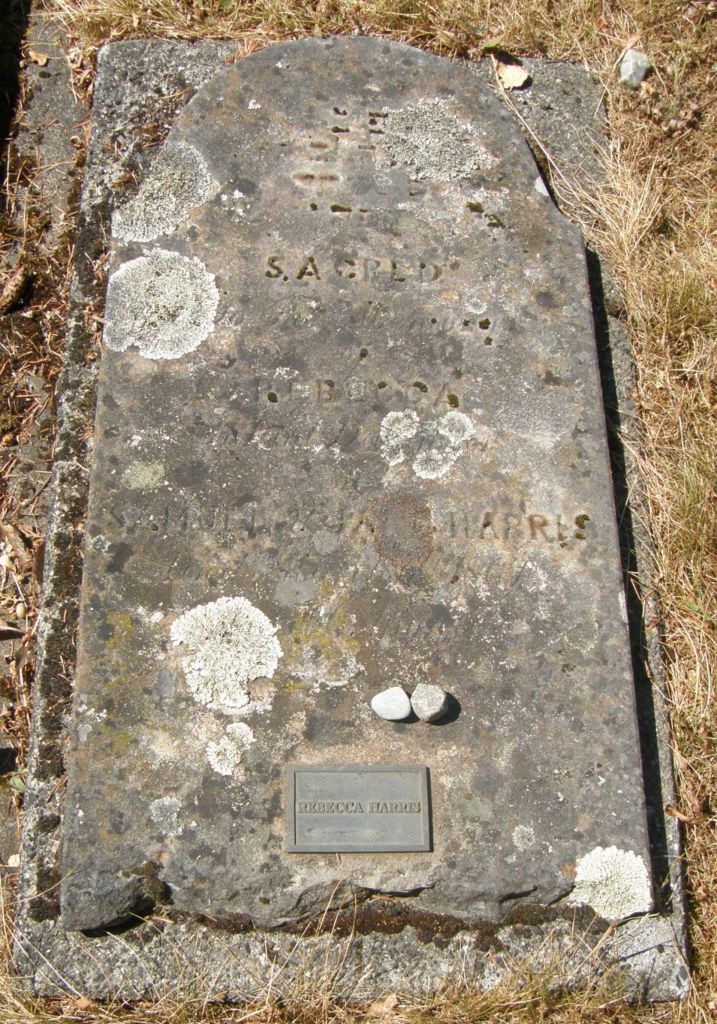 Rebecca Harris was 6 months old when she died in 1880, and is buried next to the memorials for Adele and Grace Meiss. Her grave marker is unusual when compared to her neighbor’s, as it is a full sized adult memorial instead of a smaller, child-sized headstone. The memorial has been weathered to the point of almost being completely illegible, with her name, age, and date of death barely readable. To ensure her grave is not wiped clean, a bronze plaque bearing only her name has been placed at its base.