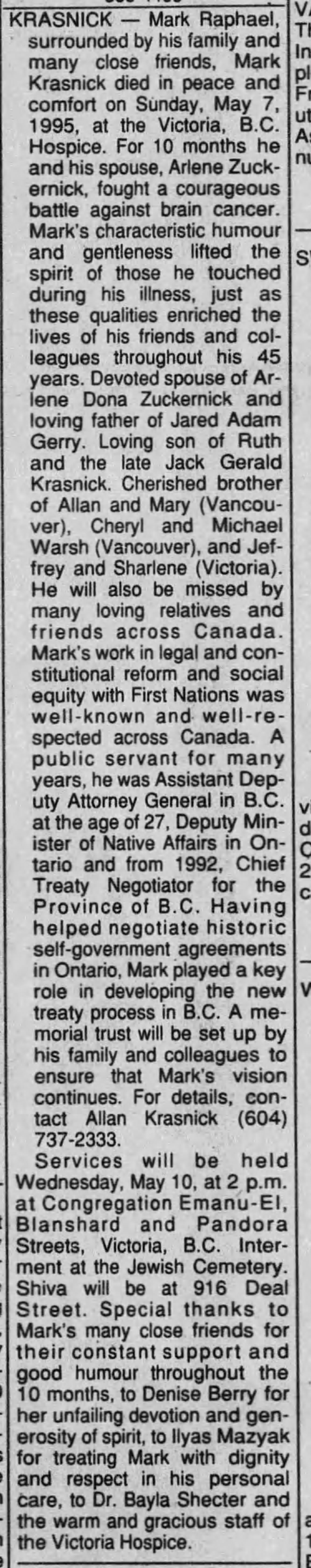 Death: May 7, 1995 in Victoria, B.C.