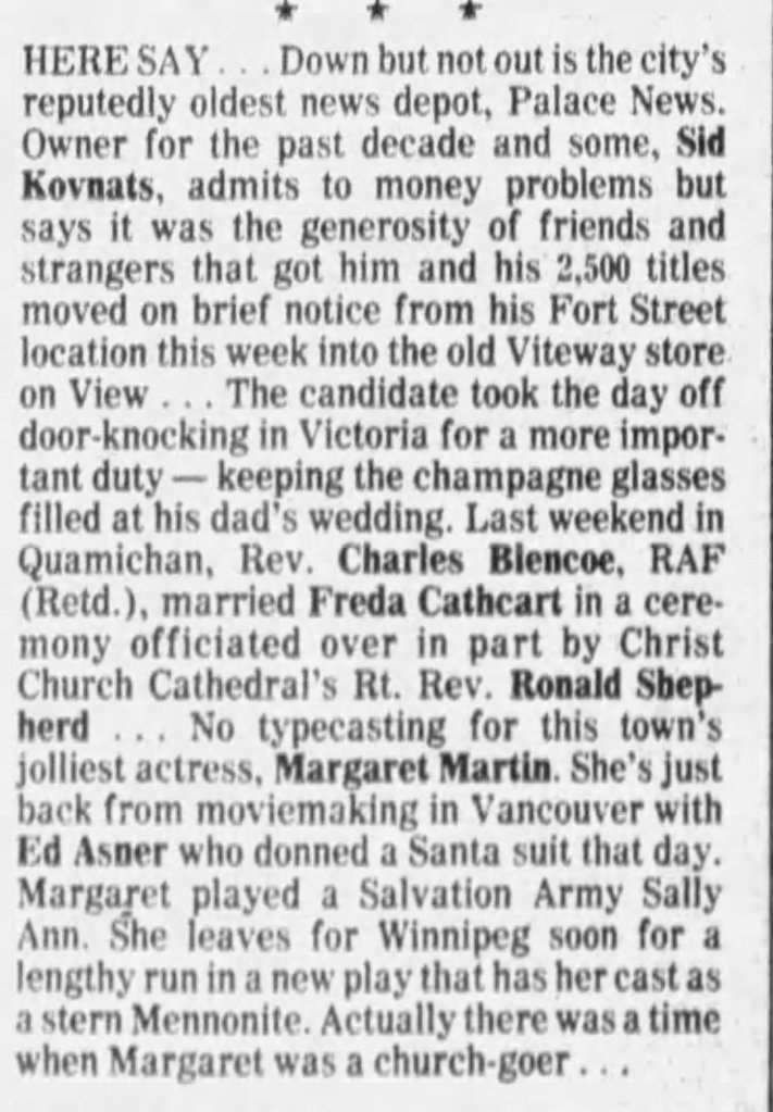 The 1957 Voter’s List shows Sidney and Mrs. Sidney as living in Peace River, Alberta. Sidney was listed as a merchant. In 1936 The Voters list shows Sidney and Annice living in Edmonton West. Sidney was listed as a hotel manager.
