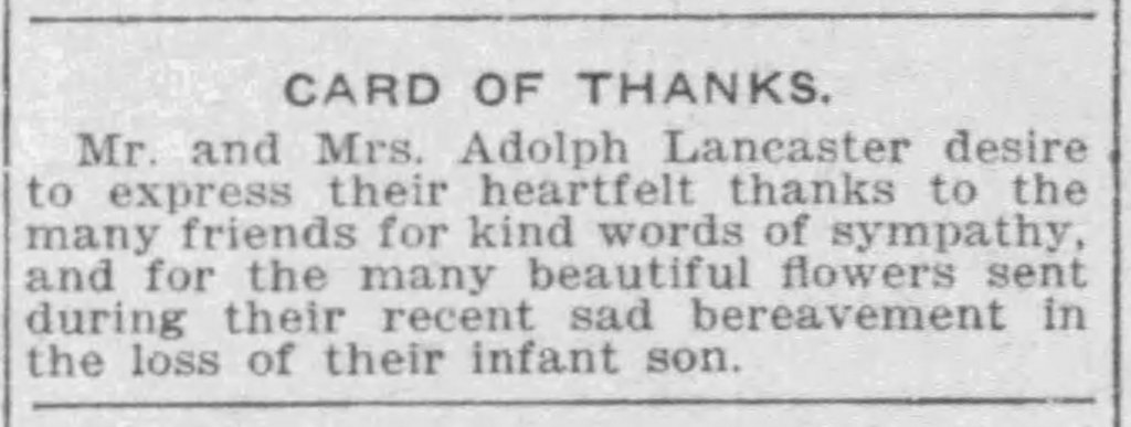 The 1921 census listed Kate Davis, Adolph’s mother-in-law, as living with Adolph, Josephine and their eight year old son Ralph. Kate often accompanied the family on trips including visits to Vancouver, and to England. The couple had another son, George, who died in infancy.