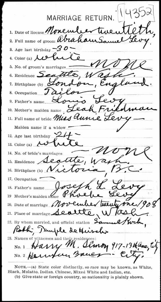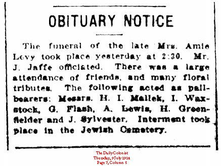 Annie married Abraham Levy, a tailor and had a daughter Leitha. Leitha is quoted as saying that with “Levy’s marrying Levy’s marrying Levy’s…..”Nobody had to change their name”.