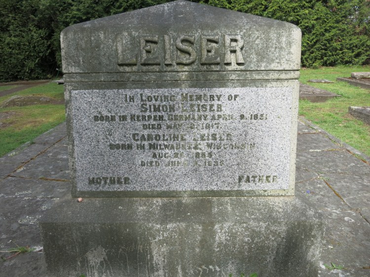 In 1910 Simon and Caroline Leiser built a large home at 1005 St. Charles St. It was designed by Samuel Maclure in the Arts and Craft style. They had 5 daughters and 1 son. Florence and Amelia (Amy) Leiser each married Oppenheimer brothers, sons of the Oppenheimer Brothers pioneer merchandising firm. Amy marred Milton and Florence married Solomon. Florence and Solomon were buried in the Oppenheimer family plot in the Jewish Cemetery.