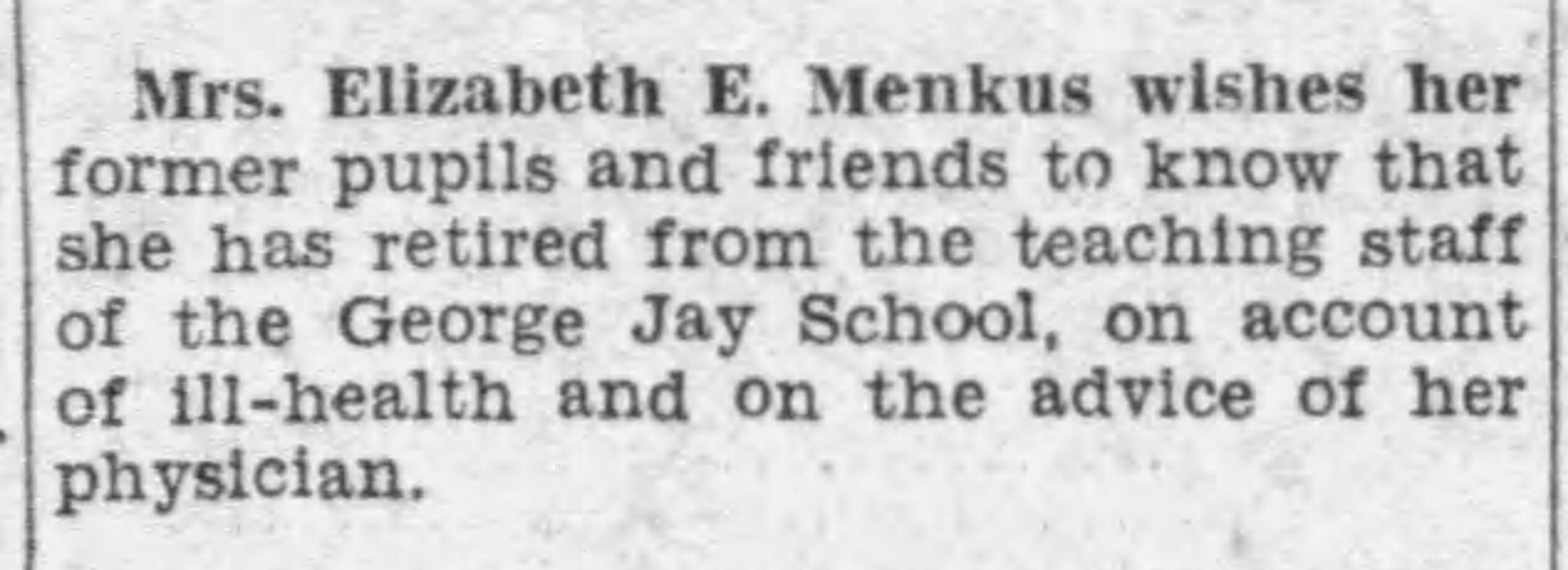 Elizabeth Menkus was a daughter of Victoria pioneers. She was an excellent student and went on to become a popular school teacher, wife and mother.