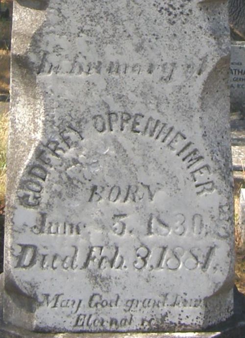 Gottfried Oppenheimer was also known as “Godfrey,” the English equivalent of his German given name—and the given name which is inscribed on his gravestone.