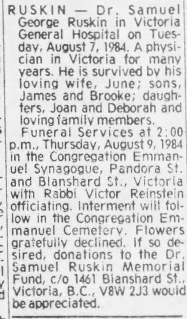 Death: August 7, 1984 in View Royal, (Victoria)