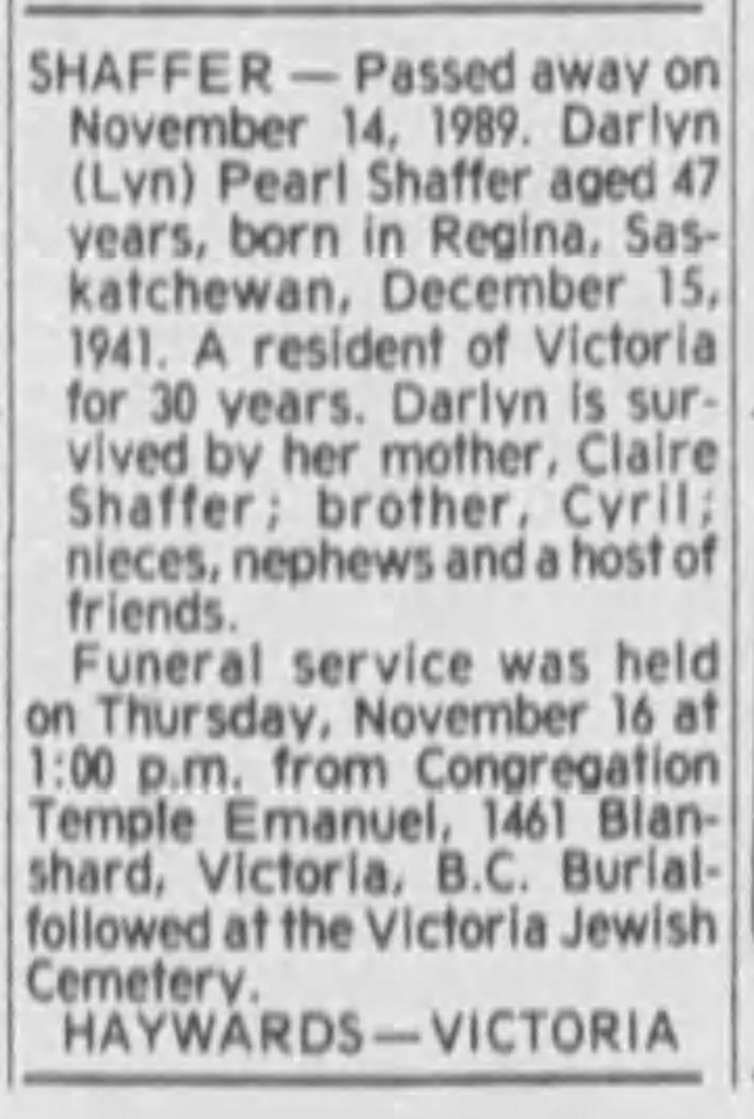 According to the 1968 Voters list for Victoria, Darlyn was living with her parents at 611 St. Charles Street.