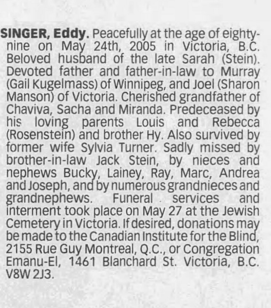 Death: May 20, 2005 in Victoria, B.C.