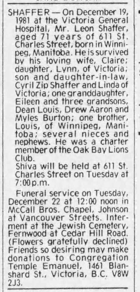 Death: December 19, 1981 in Victoria, B.C.