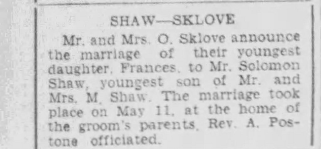 He married Frances Sklove circa 1946 in Edmonton.