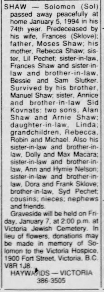Death: January 5, 1994 in Victoria, B.C.