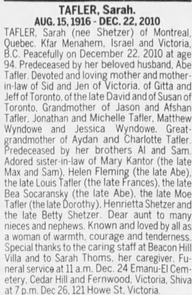 Death: December 22, 2010 in Victoria, B.C.