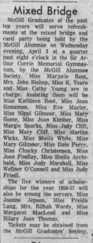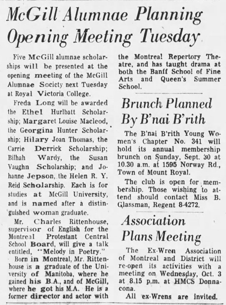 According to the voter’s list for Notre-Dame-de-Grâce in 1962, Bilhah was a housewife and living with her husband Jacob who was in the Textile business. The 1963 Montreal voter’s list shows that Bilhah was a teaching living with Jacob who was listed as a merchant.